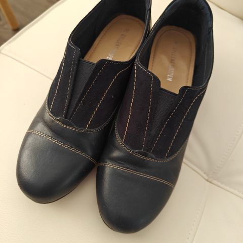 Koko 5 eli vastannee 38. Ei hyvät, jos kovin leveä lesti. Tummansininen/beige. Purjehduskenkien tyyliset. Päällinen aitoa nahkaa.