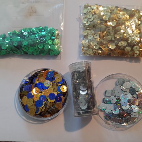 Askarteluun/ käsityöhön erilaisia paljetteja , ommeltavia ja liimattavia koristekiviä, paljetti nauhaa, tereetä vaalea lila rulla, erilaista koristetta ym..Myydään kaikki kerralla.