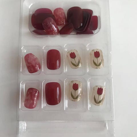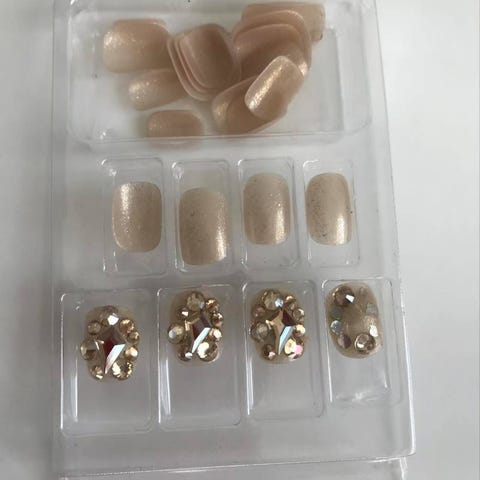 Tarvikkeena ei ole kynsien kiinnitykseen tarkoitettua kaksipuolista teippiä, se täytyy ostaa erikseen.