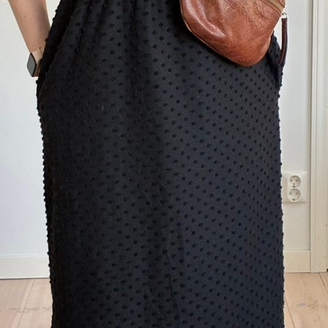 Uudenveroinen mekko, kerran ollut päällä ja pesty. Lyhyet hihat, napit edessä, taskut, rento malli, ei vyötä. 100% lyocell.