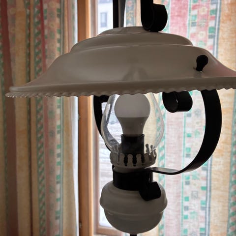 Näyttävä keittiövalaisin pöydän päälle, valkoiset kuvut, pistokekiinnitys. Ostaja maksaa postikulut