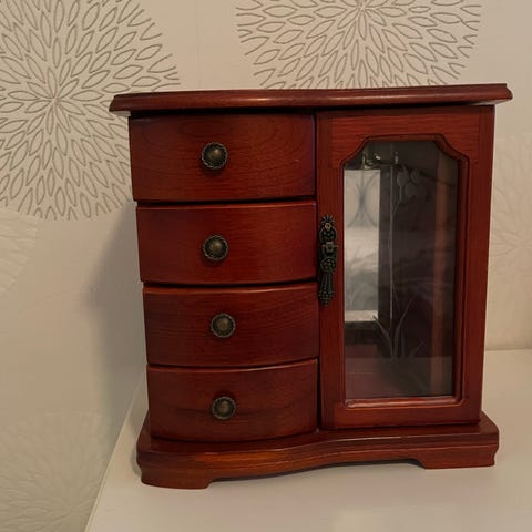 Myydään pieni puinen korulipasto / säilytysrasia,