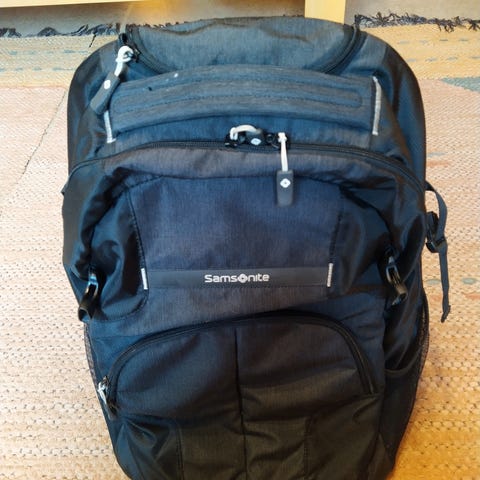 Samsoniten kokoontaitettava matka-trolley. Pientä käytönjälkeä löytyy.