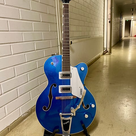 Tässä joutilaana upealta näyttävä ja kuulostava White Falcon. Ostin tämän uutena v. 2022. Muuten alkuperäinen, mutta talla on vaihdettu Rocking bar -tyyppiseen. Alkuperäinen Space Control -talla on toki tallessa myös. Kitara on ollut vähällä käytöllä enimmäkseen kotisoittelussa. Kaikki liput ja laput on tallessa. Gretschin oma kova laukku kuuluu pakettiin. Erittäin hyvä vaihtoehto uudelle kitaralle!