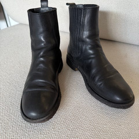 Stand out! Upeat harmaat saappaat kesään ja syksyyn. Korotettu pohja, joten korko ei ole niin korkea kuin miltä näyttää. Aitoa nahkaa. Toisen kengän sisäosassa nähtävissä raitoja, mutta pienet kulumat tekevät Allsaintsin tyylistä vain enemmän street cred! 🖤 Pohjat erinomaisessa kunnossa. Alkuperäinen hinta 299,-