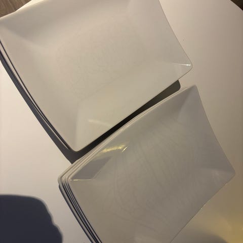 5 kpl lautasia, kaikissa käytön jälkiä, mutta ehjiä