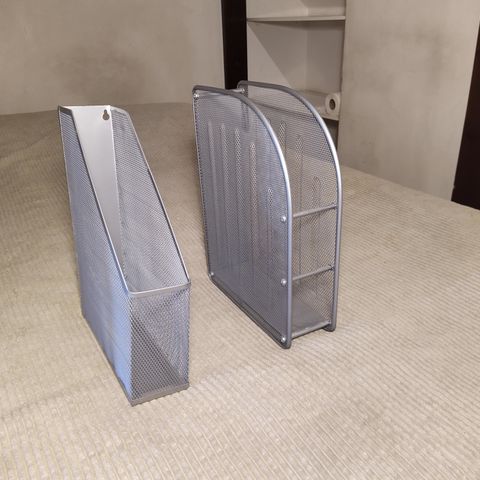 2 kpl läpinäkyviä muovisia lehtitelineitä. Toisessa teksti "Gloria" Etu- ja takasivuissa. Korkeus 23 cm, syvyys 25 cm ja leveys 10 cm.