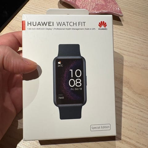 Hyväkuntoinen (ostettu 2023) vähän käytetty Huawein fit watch. Alkuperäinen laatikko, laturi yms mukaan. Väri sakura pink. Hyvä akun kesto, gps, unen seuranta jne.