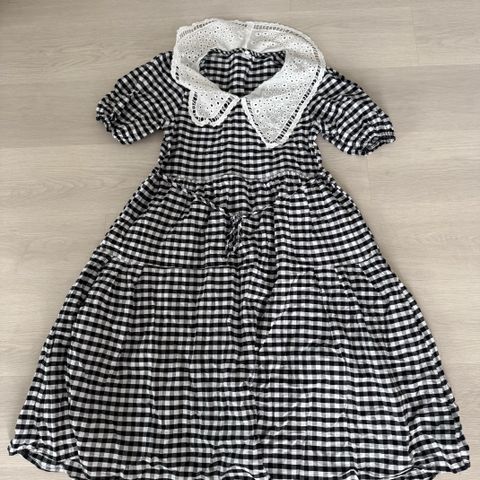 Muvan mukainen äityisvaate. Koko merkintä on epämääräinen. Ollut 160cm pitkällä henkilöllä. Vyötäröllä kiristysvyö vatsan koon mukaan.