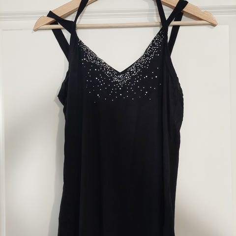 Käyttämätön musta toppi, jossa söpö perhonen vyötäröllä