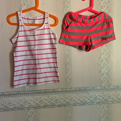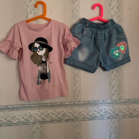Tyttöjen t-paidat 2kpl, koko noin 134cm ja shortsit. Hinta yht.3€