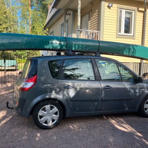 Erittäin hyväkuntoinen. Kuvassa näyttää kuin pohjassa olisi jotain mustaa, mutta ei ole. Uutena ostettu Welhonpesästä (kts sivusto) 4 v sitten. Vesillä ollut about 5 krtaa. Ehjä. Siisti. Puinen mela + "muovinen" mela. Yhteishinta 600 €. Tällä hetkellä kanootti on Tammisaaressa.