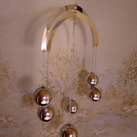 Mobilen korkeus 18,5 cm, leveys 16 cm, ripustusketju koukkuineen 55 cm