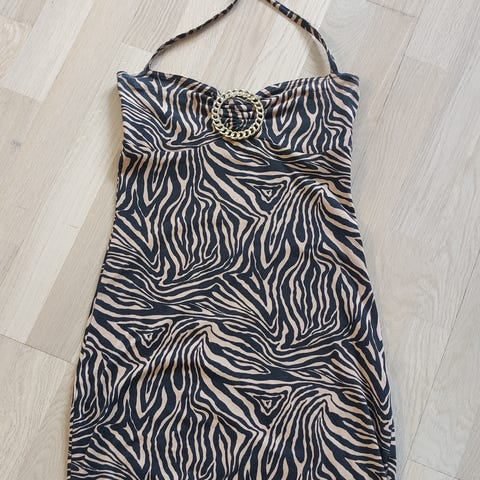 Valkoinen lyhyt mekko, jossa hopea paljettiyläosa. Mekkoon saa lisättyä valkoiset säädettävät naruolkaimet halutessaan. Vetoketju takana.