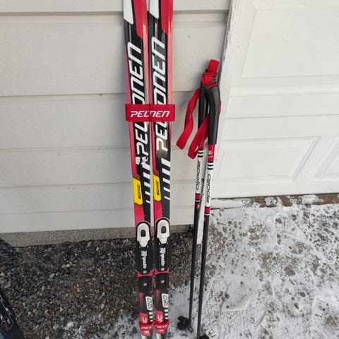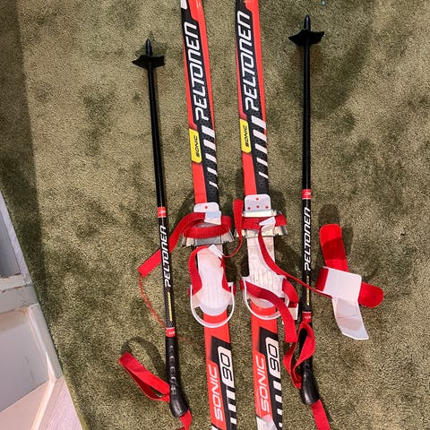 Myydään lasten 120 cm Peltoset nnn-siteillä + sauvat 90 cm. Nouto Kangasala Vatiala.