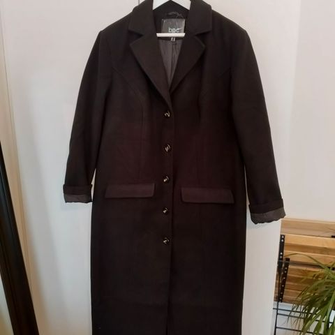 Elloksen villakangastakki, käytetty vain muutaman kerran. Takahalkio vielä kiinni ompeleella. Kaunis klassinen malli ja väri.