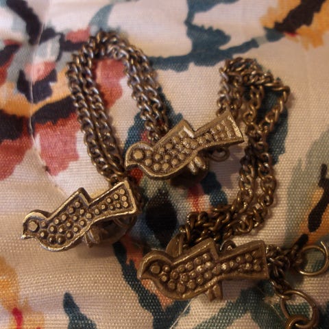 Koska riipukset ovat todella vanhoja, niitä on erittäin vaikea löytää. Olen kuitenkin päättänyt myydä kokoelmastani pois Nikita-ikoniriipukseni. Riipus on pronssia ja saanut pintaansa upean patinan. Riipukseen koon näet kuvassa olevasta mitasta. Riipukseen on vuosisatojen varrella kulunut pieni reikä ja taustapuolella on naarmu, mutta muuten riipus on ripustinreikä mukaan lukien ehjä. En kuitenkaan suosittele käyttämään sitä riipuksena, ettei sen pinnan hieno patina vahingoitu. Pussissa sitä toki voi kantaa mukanaan, jos niin haluaa.