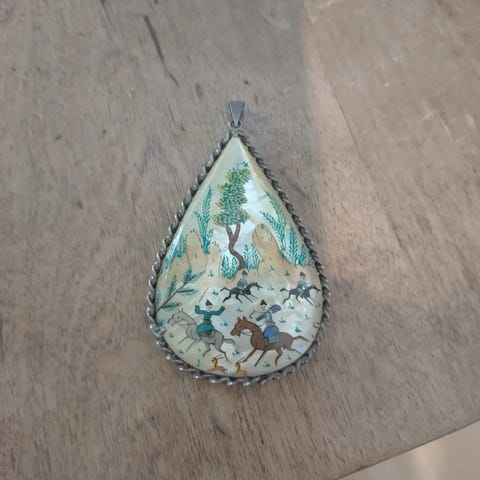 Tarjolla uuteen kotiin hieno ja erittäin harvinainen 1300-luvun manaajan riipus. Riipuksen hahmo esittää pyhimykseksi kanonisoitua munkkia Nikita Besogonia. Besogon ei ole sukunimi, vaan tarkoittaa demonin hakkaajaa. Tämä näkyy myös Nikita-aiheisissa ns. ikoniriipuksissa, joissa Nikita mätkii demonia joko nuijalla tai ruoskalla pitäen usein demonia kiinni tukasta tai kurkusta.