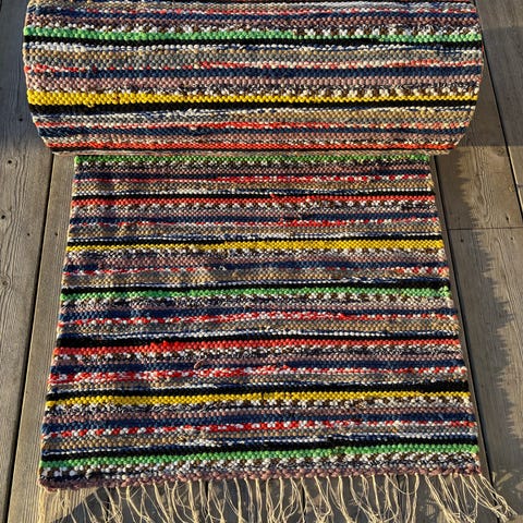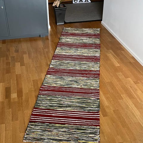 Myyn mielelläni koko rullan kerralla. Mattoa voidaan pätkiä ja leikata erikokoisiksi paloiksi, sinulle sopiviin mittoihin. Kerran jo pesty painepesurilla "varastopölyistä" eivätkä värit levinneet!