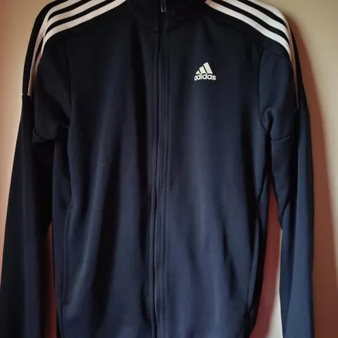 Adidas naisten urheilutakki on mintun vihreä, kokoa L. Takki sopii hyvin viileämpiin säihin ja siinä on vetoketjukiinnitys ja aukot peukaloille hihoissa.