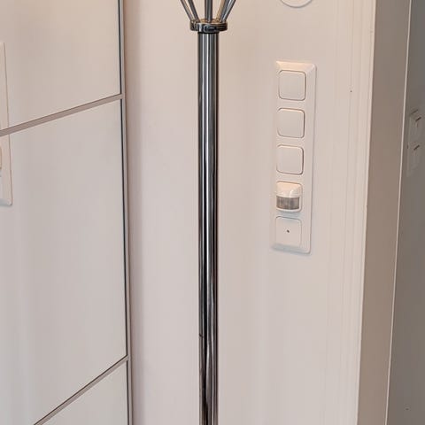 Erittäin siisti designnaulakko. Hyllyosa on valkoiseksi maalattua terästä, muuten epoksoitua ja kromattua terästä.
