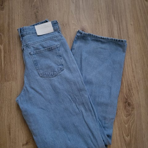 Myytävänä sitruunankeltaiset Andiata -merkkiset farkut. Koko 36. Takataskuissa avattavat vetoketjut.