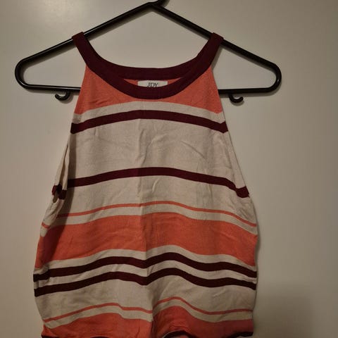 Ensimmäinen on crop-mallinen, merkki Forever 21, kokomerkintä L. Kai-kai n. 54cm, joustaa jopa 70cm asti. Olka-helma n. 44cm. Materiaalilappu on hävinnyt ajan saatossa.