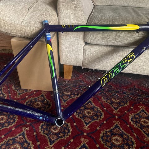 Ostin NOSsina, en koskaan koonnut loppuun asti, eikä rungolla siis ajettu. Kuljetuksessa rukoon tuli vaurioita maaliin, lähinnä emäputkeen ja keskiömuhviin, jotka paikkamaalattu. 27,2mm satulaputki, BSA kierteen ja tuumanen keula ilman kierteitä.