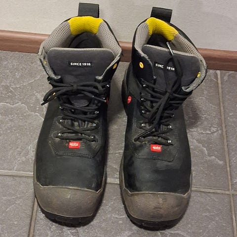 Hyvässä kunnossa olevat mustat pitkävartiset Sievi merkkiset turvakengät. Todella hyvät jalassa ja tosiaan ovat hyväkuntoset, pientä kulumaa vaan löytyy etuosasta (näkyy kuvassa) mutta ei yhtään haittaa käyttöä ja on vaan pinta naarmua. Ei oo paljoa käytetty.