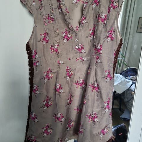 Beige värinen hihaton naisten toppi, koko M. Käsin virkattu. Lanka pellavaa muistuttavaa. Materiaali ei ole määritelty. Sopii erilaisiin asukokonaisuuksiin ja kerrospukeutumiseen.