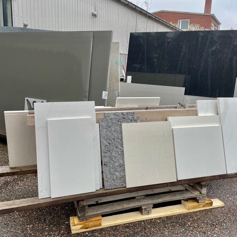Pientä ylellisyyttä; Itseltä ylimääräiseksi jäänyt uniikki pala harvinaista, aitoa larvikiittia, hyötykoko 46 x 58 cm. Soveltuu erilaisiin käyttötarkoituksiin, esim. keittiötasoksi, korukiviksi, tulisijan lattiapellin korvikkeksi, pöydän kanneksi jne,, itselläni larvikiottia ollut hellan vieressä laskutasona ja tiskipöydän tasona. Jos haluaa palasta "tavallisen tason 60x60# voi levyn kiinnittää sen kokoiseen alusvaneriin, ja reunalistoittaa, jolloim käy myös irroitettavaksi tarjoilu-/kayyausalustaksi. Tästä palasta leikkaamisessa ylimääräiseksi jäävästä palasta saa vaikka pannunalusia tai korukiviä. Palan hinta 60e.