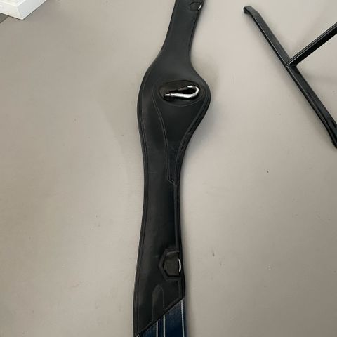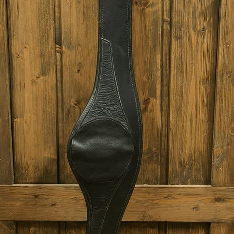 Erittäin hyväkuntoinen, vähän käytetty, musta, nahkainen Passierin satulavyö. Kiinnityslenkit gramaaneille yms. sivuilla ja keskellä. Pituus 130cm. Jämäkät joustot molemmissa päissä....
