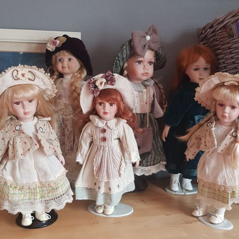 Posliininukke (hattu ja käsilaukku), jonka korkeus n. 32 cm. Mekko on vaalean sininen. Puhdas ja ehkä nukke. Postitus 6,90€ tai nouto Lempäälästä.