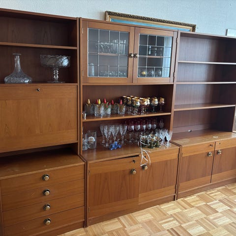 Vintage kirjahylly kolmessa osassa. Erilliset osat, 80 cm. Leveys yhteensä. 240 cm. Tarjoa!