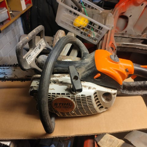 Stihl moottorisaha peltikyltti kyltti Service huolto keräily