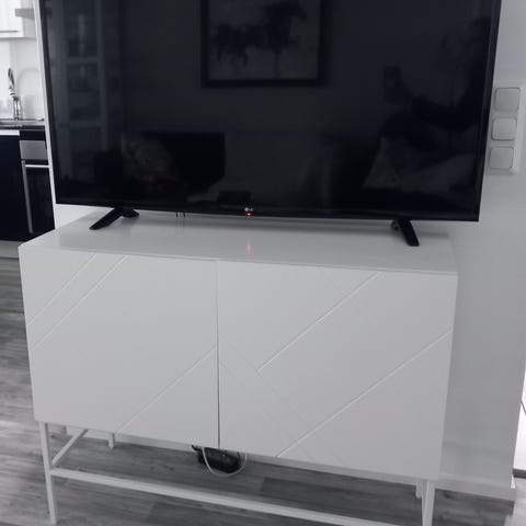 Hyväkuntoinen muistaakseni Boconcept merkkinen valkoinen senkki / tv-taso Espoon Mankkaalla.