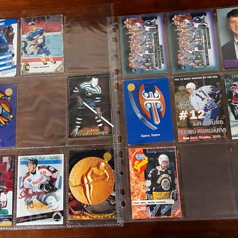 Jääkiekko, jalkapallo ja digimon keräily kortit.