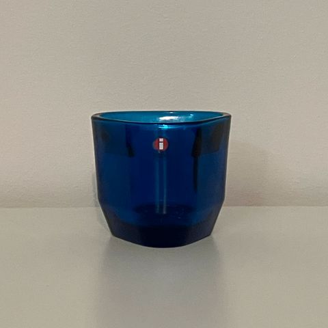 Alfredo Häberlin suunnittelema Tris tuikku. Väri merensininen. Valmistaja Iittala. Korkeus 7cm, halkaisija 8cm.