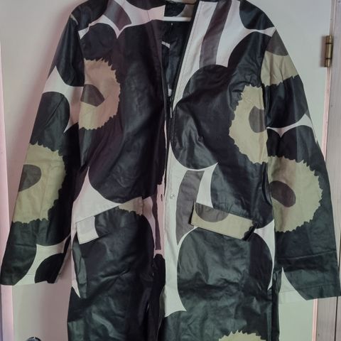 Mika Piiraisen suunnittelema Marimekon hupullinen Unikko sadetakki.