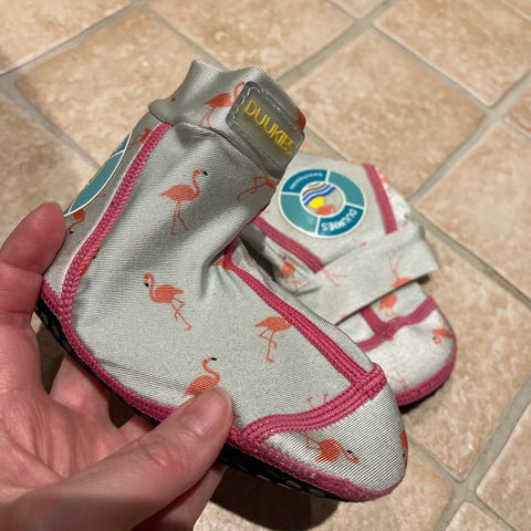 Swimply-uimakengät, väri kirkkaan pinkki. Koko 26/27. Käytetty kerran rannalla. Sisällä on jonkin verran hiekkaa, mutta muuten hyvässä kunnossa. Voidaan lähettää postitse.