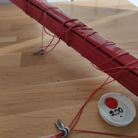 140 cm leveä rullakaihdin, toisen pään kiinnike puuttuu, mutta niitähän saa varaosana.