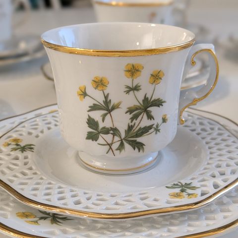 Kuvienmukainen ruokailu-ja kahviastiasto aterimineen sekä maustepurkkeineen, joita 20kpl.