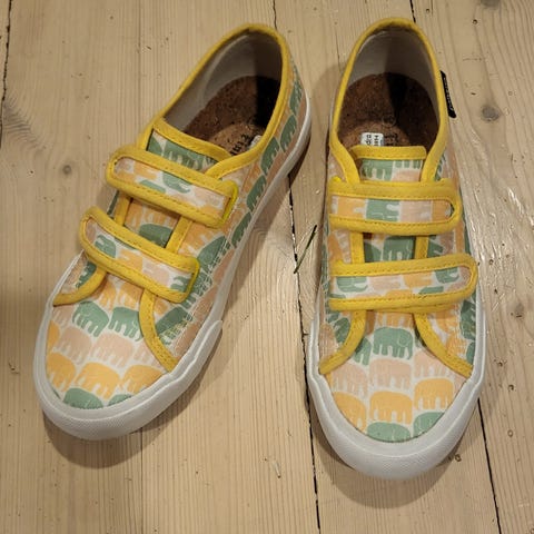 Uudet Finlaysonin Elefantti-kuosiset tennarit koko 34 (reilu). Hengittävä korkkisisäpohja.