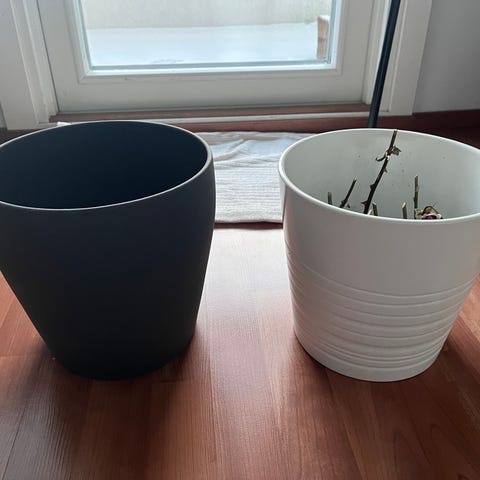 Rottinkinen kukkaruukku isommalle kasville. Väri musta. Irroitettava sisäruukku. Hyvässä kunnossa. Nouto Tampereen Lapinniemestä.