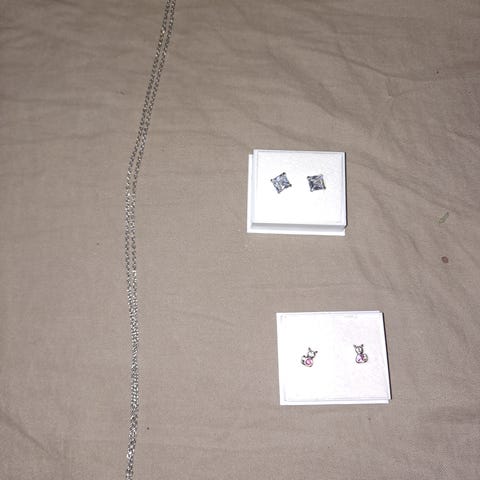 Hopeinen oliviikaulaketju valkoisilla helmillä. Pituus n. 45 cm. Riipuskohtaa ei pysty siirtämään vaan helmet roikkuvat aina samassa kohtaa. Kalevala korun mallistoa?