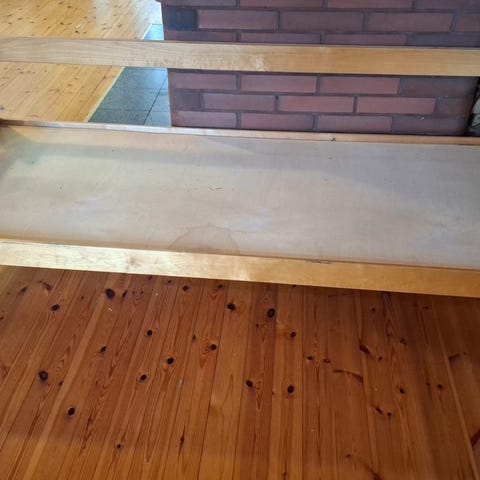 Levitettävä laverisänky vakosamettisilla taittopatjoilla + vuodevaatelaatikko.