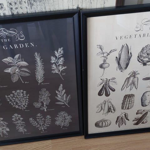 Mustavalkoiset Ikean sisustustaulut.