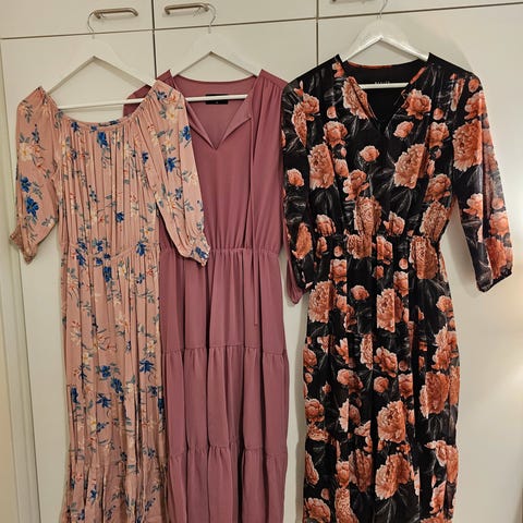 Paul X (Paul Smith) mallikappale kesämekko. Merkitty koko 42 mutta vastannee 38 tai 40. Sinivalkoraidallinen kangas, oletettavasti pääosin puuvillaa. Pitsimäistä kuviointia. Napit selässä, vetoketju kyljessä, edessä koristelista ja rusetteja.