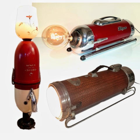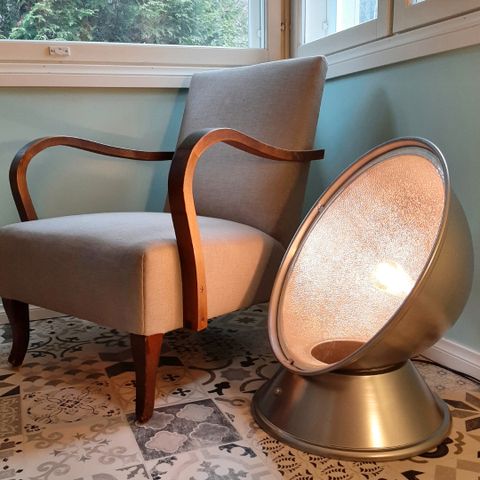 Pesukone ajalta ennen pulsaattoria, joka jatkaa nyt elämäänsä valaisimena. Valon suuntaa saa käännettyä kahvasta.
