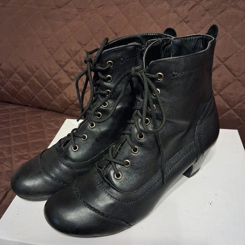 Vanhat vaaleat vintage-nilkkurit. Koko 41. Koko ei vastaa nykyistä. Ulkomitta 24 cm, sisämitta 23 cm. Sisäsivulla vetoketju. Korko 5cm/6cm. Vuori villaflanelli, reunassa vaalea turkis, joka kulunut osittain rikki. Ulkopohjat kohokuvioista muovia. Myös pintanahka on kulunut. Rekvisiitaksi, sisustuselementiksi. Ehkä käyttöön vintage-tapahtumiin. Postistus tai nouto.